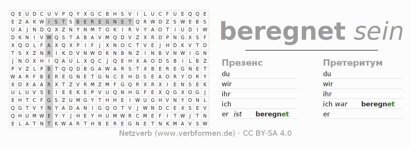 Головоломки по всем формам глагола beregnen