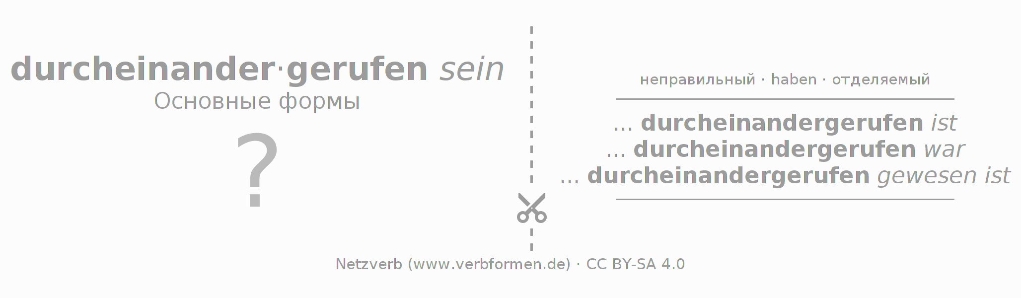 Таблицы спряжения всех форм глагола durcheinanderrufen