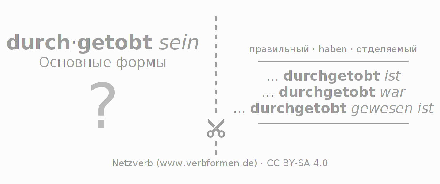 Глагольные таблицы, содержащие все формы глагола durchtoben, для наглядности объединены в одну общую таблицу.