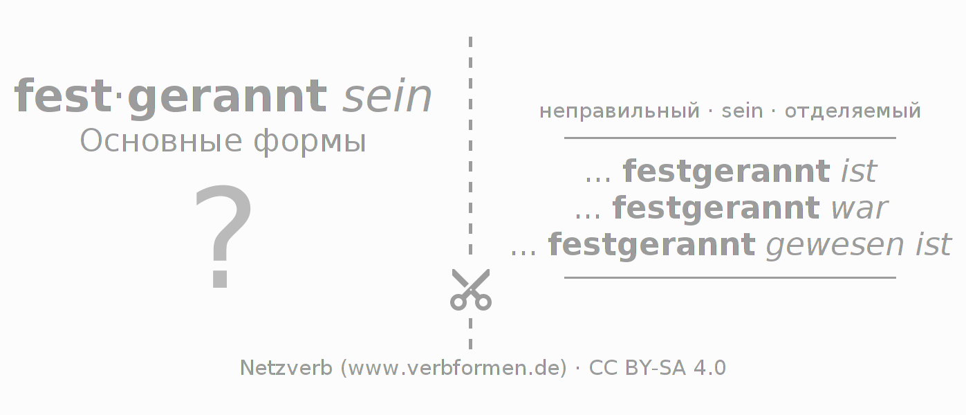 Глагольные таблицы, содержащие все формы глагола festrennen, для наглядности объединены в одну общую таблицу.