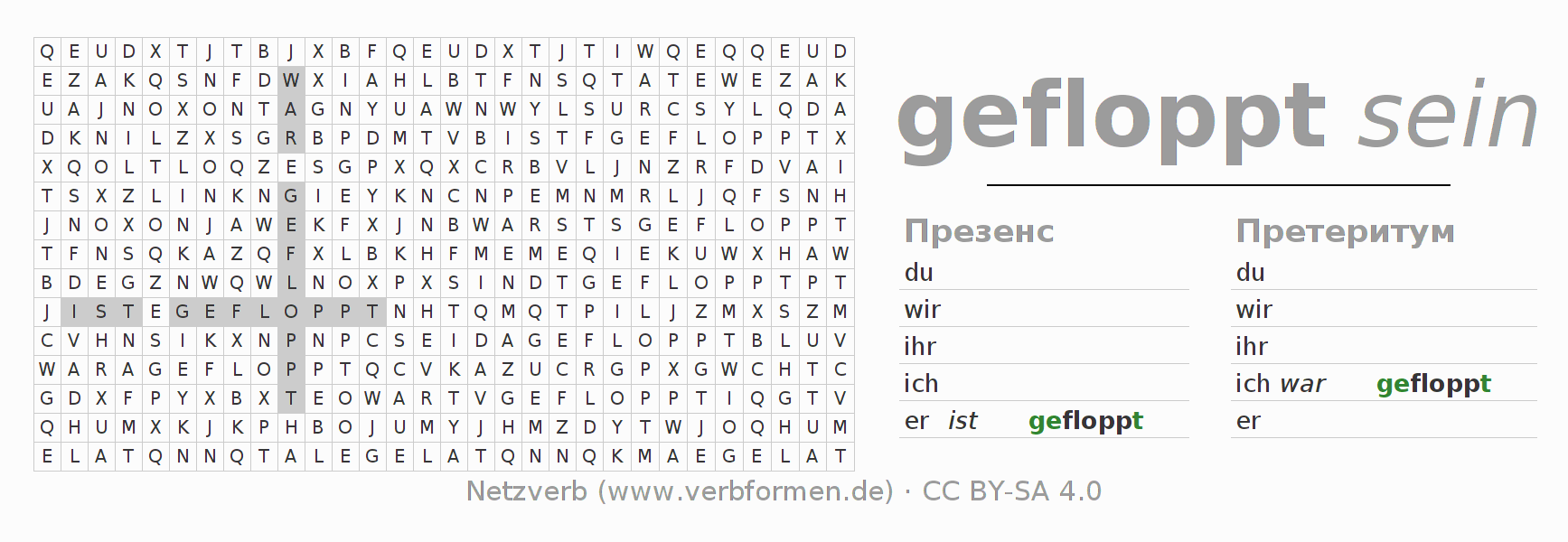 Головоломки по всем формам глагола floppen (hat)