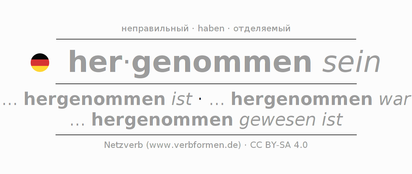 Таблицы спряжения всех форм глагола hernehmen