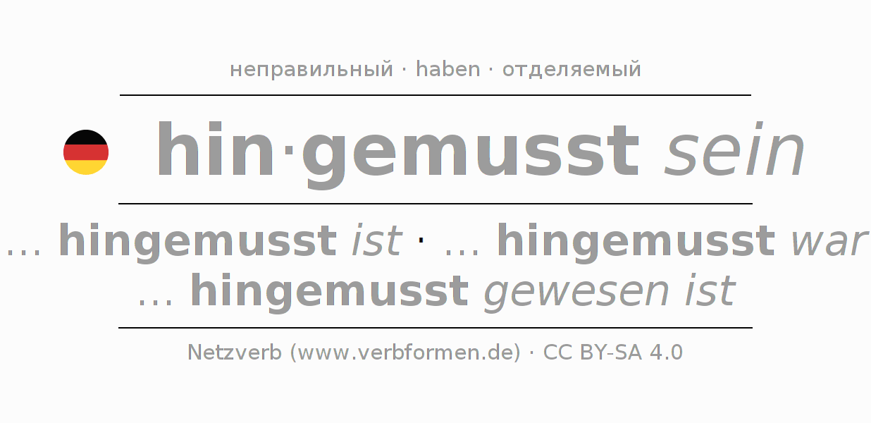 Глагольные таблицы, содержащие все формы глагола hinmüssen, для наглядности объединены в одну общую таблицу.