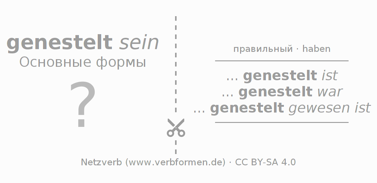 Глагольные таблицы, содержащие все формы глагола nesteln, для наглядности объединены в одну общую таблицу.