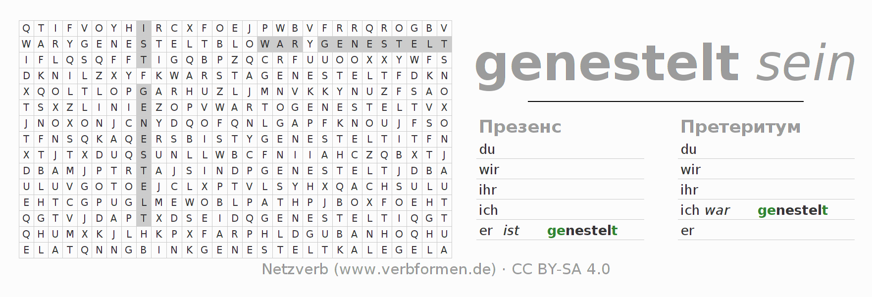Рабочие материалы служат обучением спряжениям глагола nesteln на уроке и при самообучении. Рабочие материалы могут быть свободно использованы в рамках лицензии CC BY-SA 4.0 в виде Открытых образовательных ресурсов(ООР) например могут быть бесплатно использованы на уроке. Для этого имеется много различных типов рабочих материалов для глагола nesteln в наличии. Это таблицы спряжений, головоломки и игры. Весь учебный материал доступен бесплатно как файлы PDF, в виде изображений или как интерактивная версия браузера. В дополнение к задачам, имеются бесчисленные примеры для nesteln а также помощь в использовании глаголов.