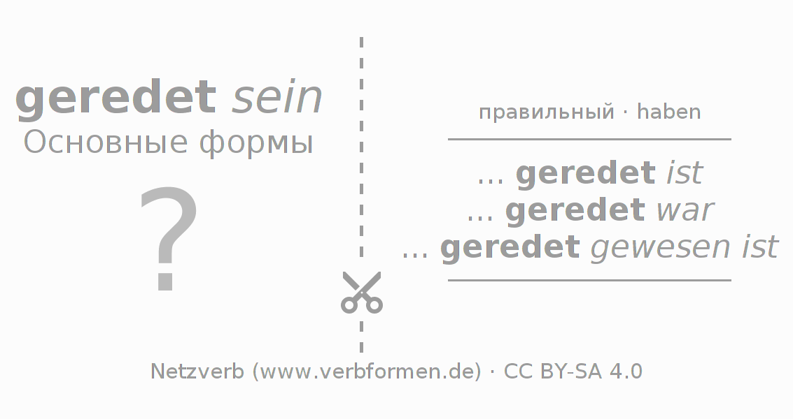 Глагольные таблицы, содержащие все формы глагола reden, для наглядности объединены в одну общую таблицу.