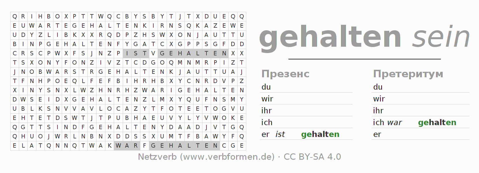 Головоломки по всем формам глагола sich halten