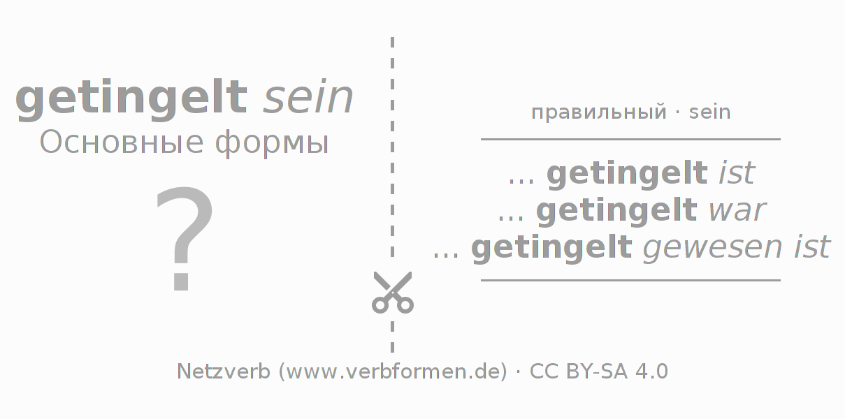 Глагольные таблицы, содержащие все формы глагола tingeln, для наглядности объединены в одну общую таблицу.