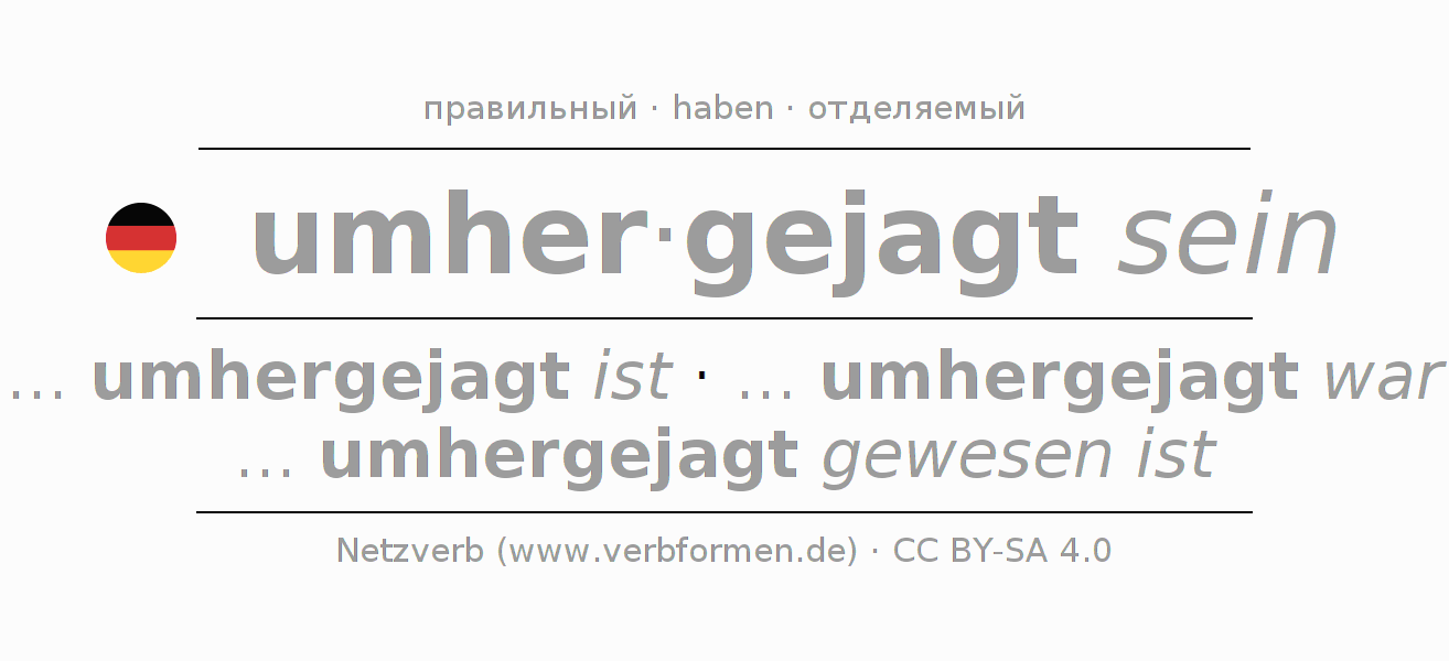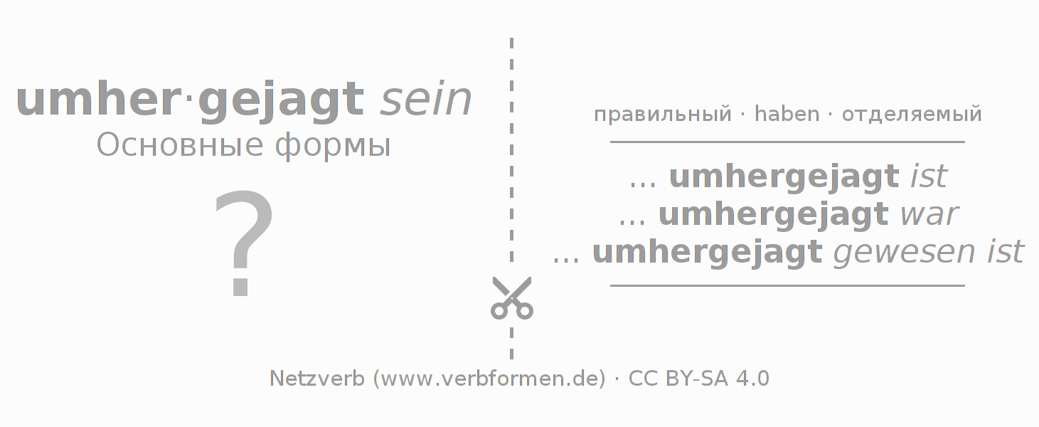 Головоломки по всем формам глагола umherjagen (hat)
