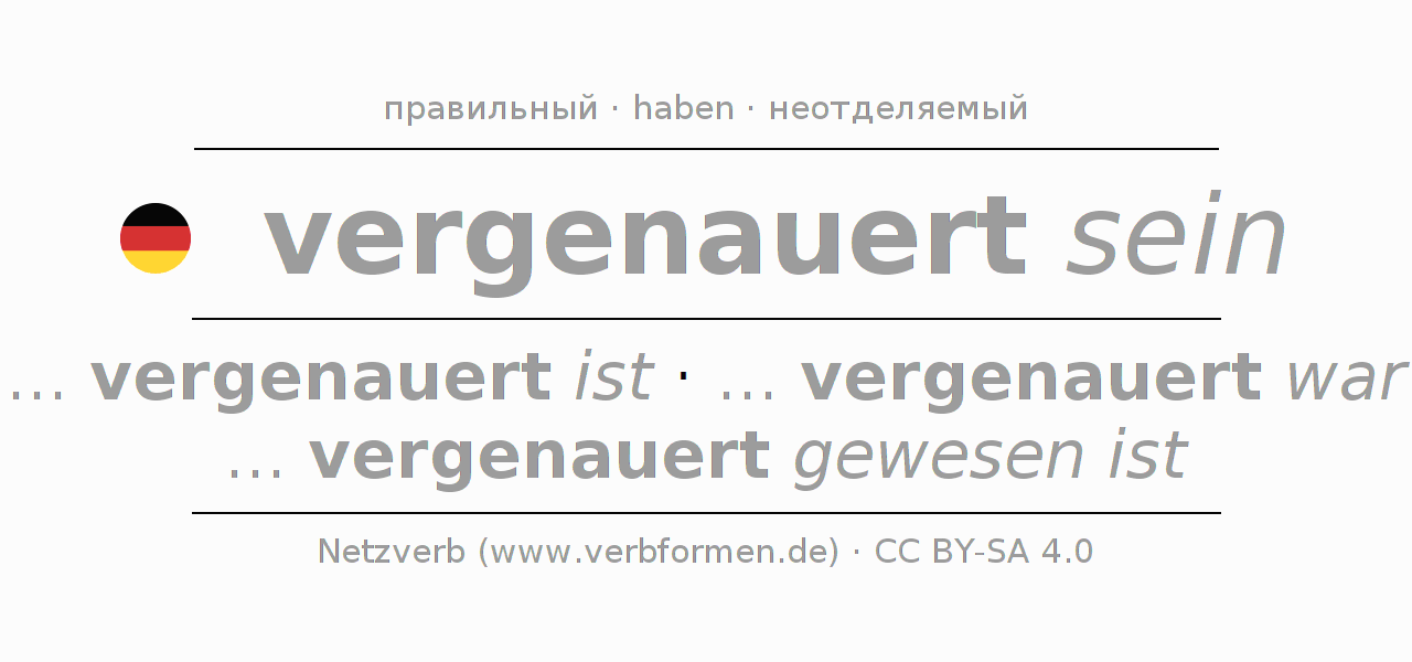 Глагольные таблицы, содержащие все формы глагола vergenauern, для наглядности объединены в одну общую таблицу.
