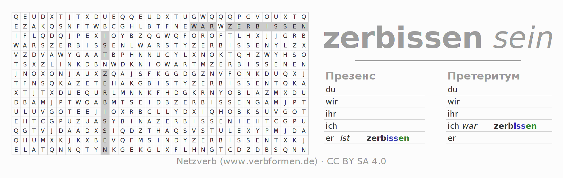 Головоломки по всем формам глагола zerbeißen