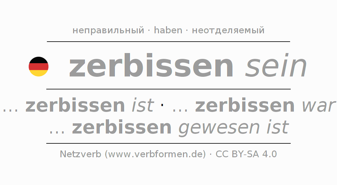 Таблицы спряжения всех форм глагола zerbeißen