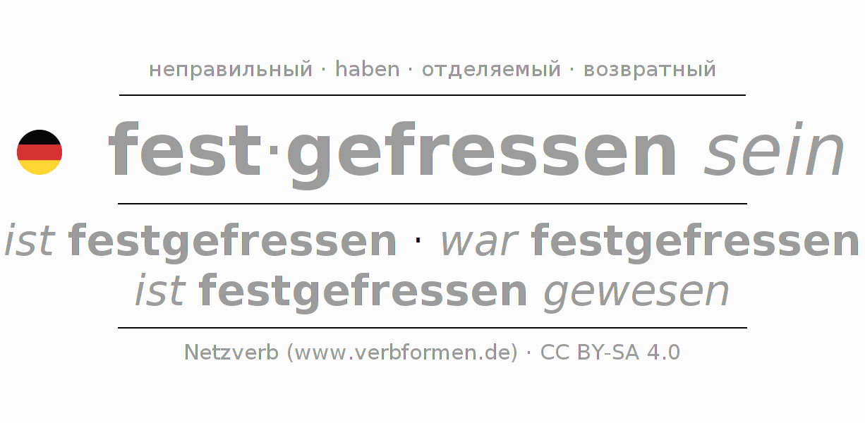 Глагольные таблицы, содержащие все формы глагола sich festfressen, для наглядности объединены в одну общую таблицу.