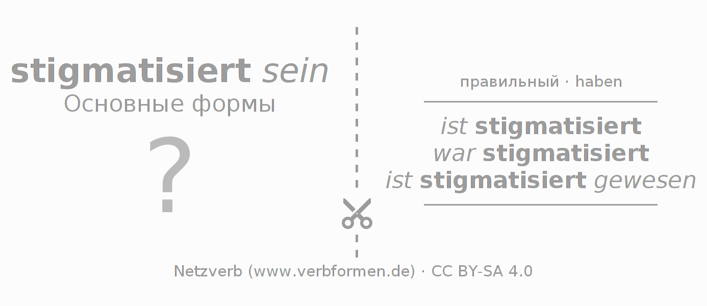 С помощью обучающих карточек можно эффективно и удобно изучать и запоминать глагольные формы stigmatisieren. Обучающие карточки можно распечатать в формате PDF и вырезать.