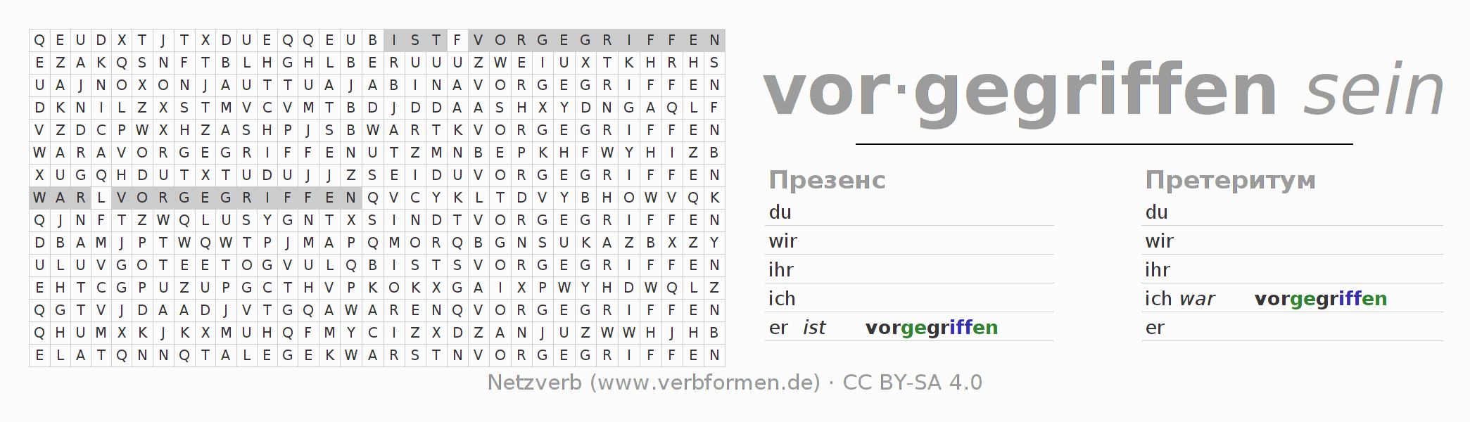 Головоломки по всем формам глагола vorgreifen