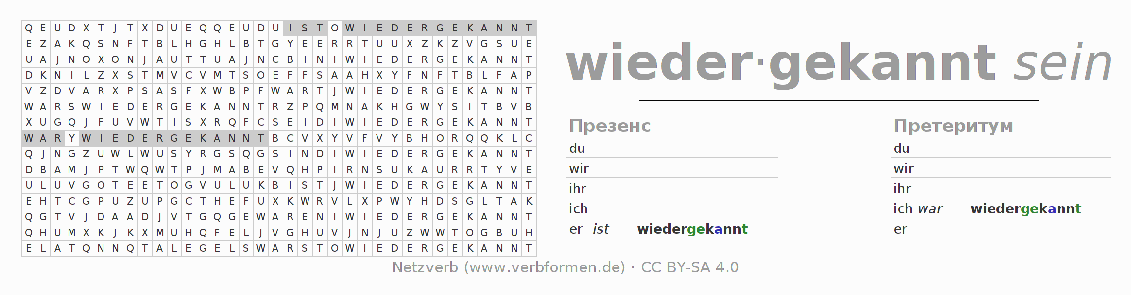 Головоломки по всем формам глагола wiederkennen