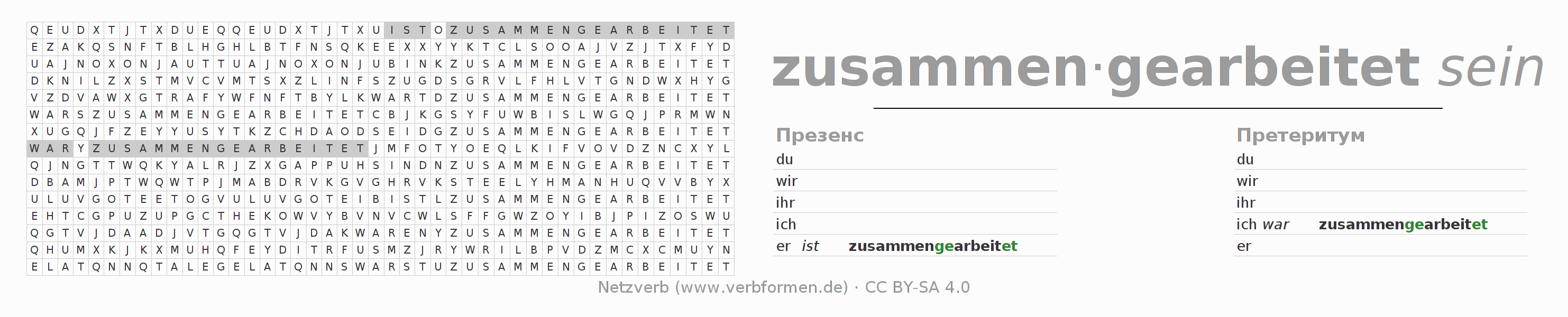 Головоломки по всем формам глагола zusammenarbeiten