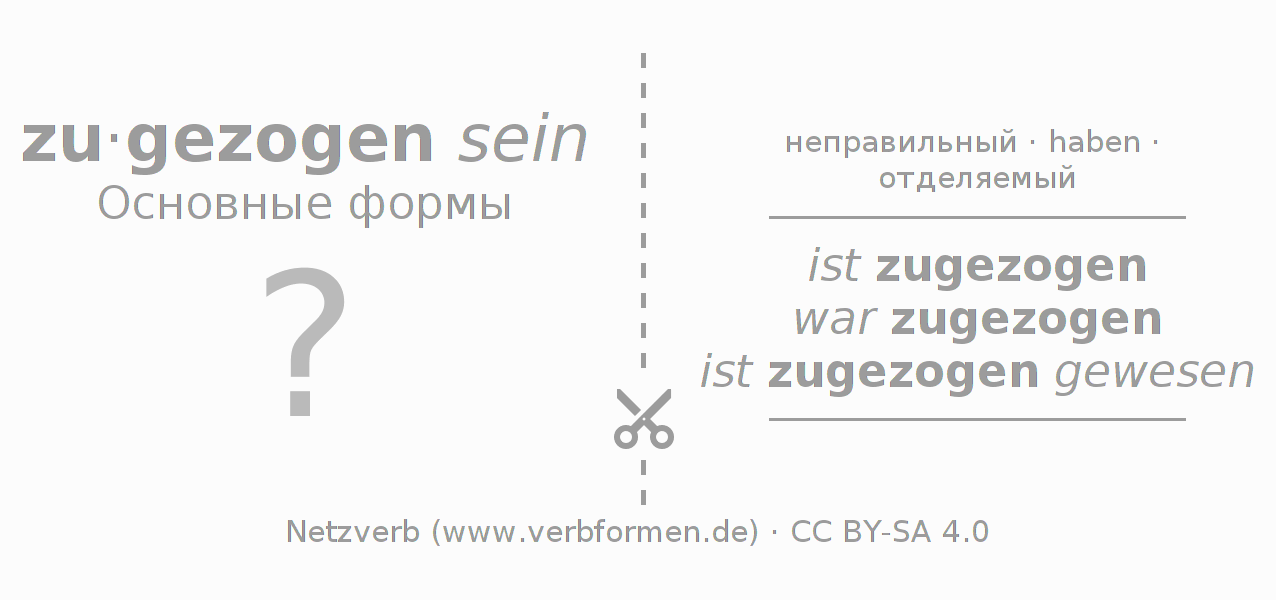 С помощью обучающих карточек можно эффективно и удобно изучать и запоминать глагольные формы zuziehen. Обучающие карточки можно распечатать в формате PDF и вырезать.