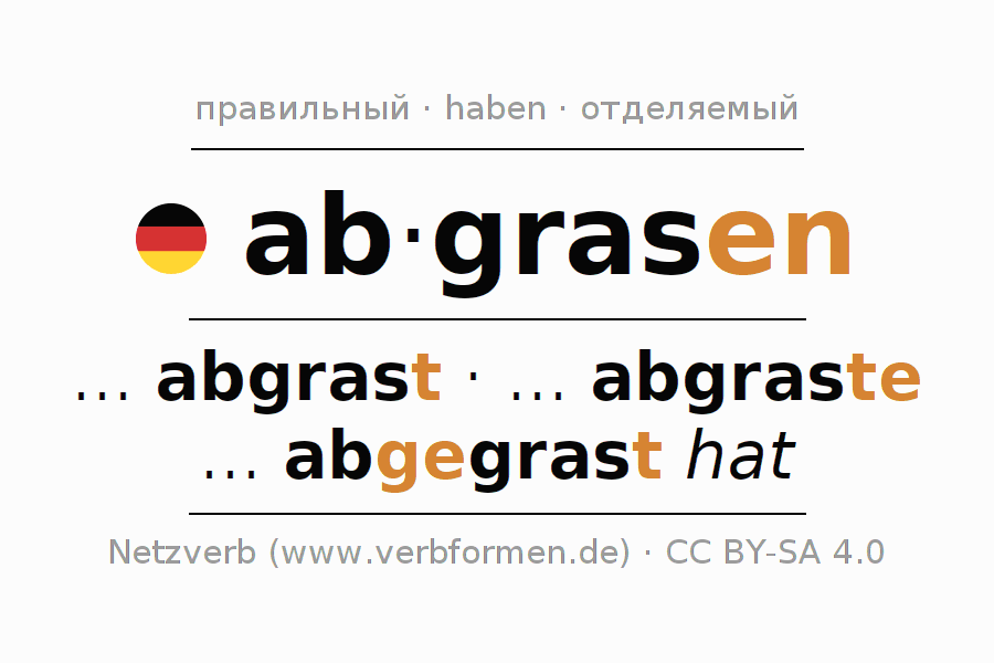 - Презенс: gras(e) (du) ab, grasen wir ab, grast (ihr) ab, grasen Sie ab
