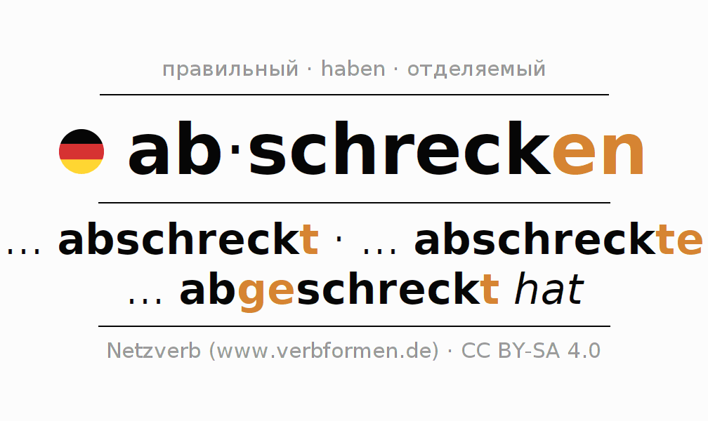 - Презенс: schreck(e) (du) ab, schrecken wir ab, schreckt (ihr) ab, schrecken Sie ab
