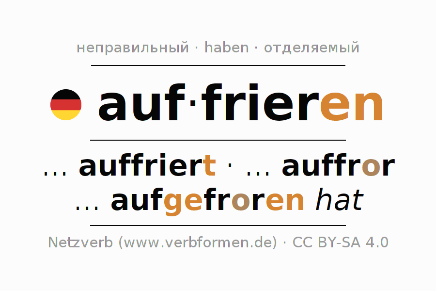 - Партицип II: aufgefroren