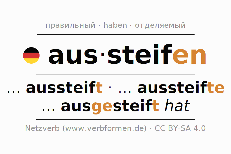 - Презенс: ... ich aussteife, ... du aussteifest, ... er aussteife, ... wir aussteifen, ... ihr aussteifet, ... sie aussteifen