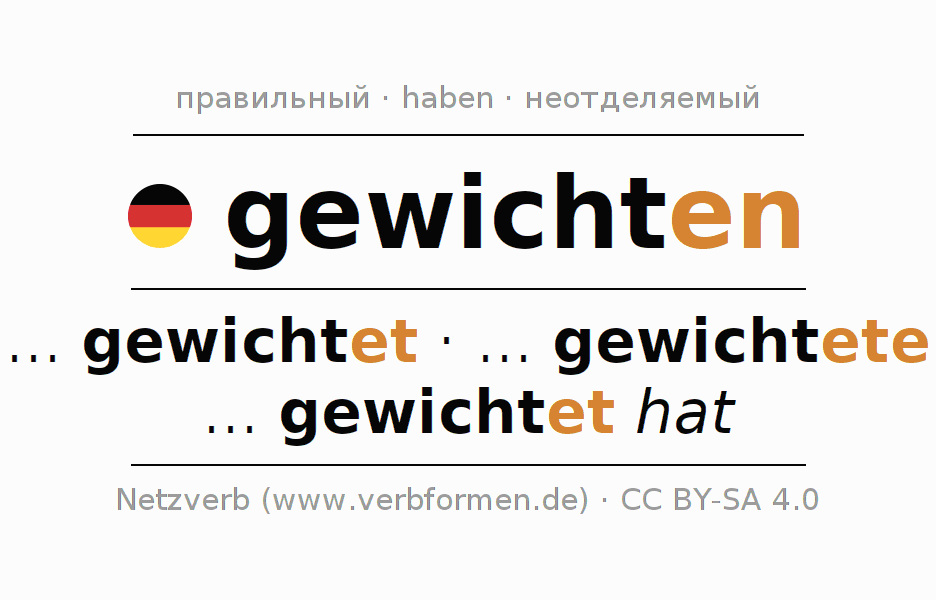 Все временные формы глагола и отглагольных форм gewichten