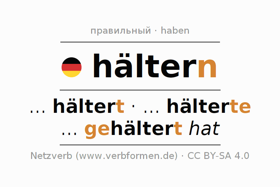 - Презенс: hält(e)r(e) (du), hältern wir, hältert (ihr), hältern Sie