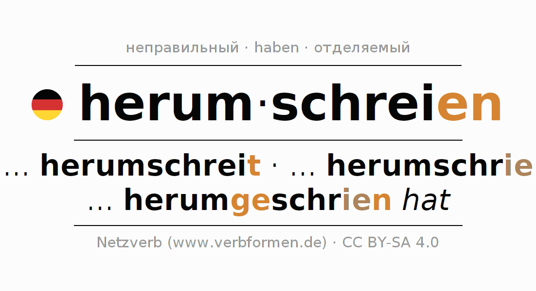 - Инфинитив I: herumschrei(e)n, herumzuschrei(e)n