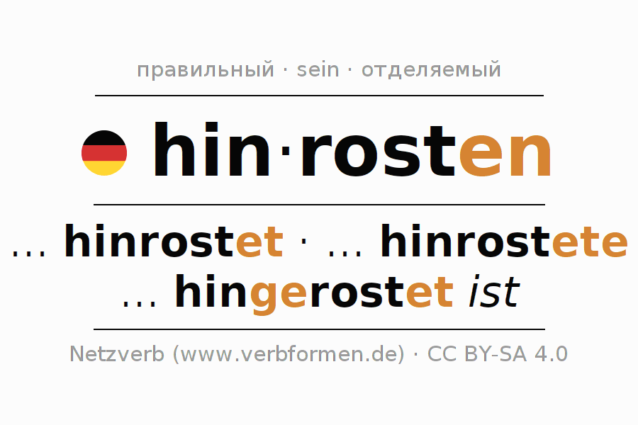 - Презенс: rost(e) (du) hin, rosten wir hin, rostet (ihr) hin, rosten Sie hin
