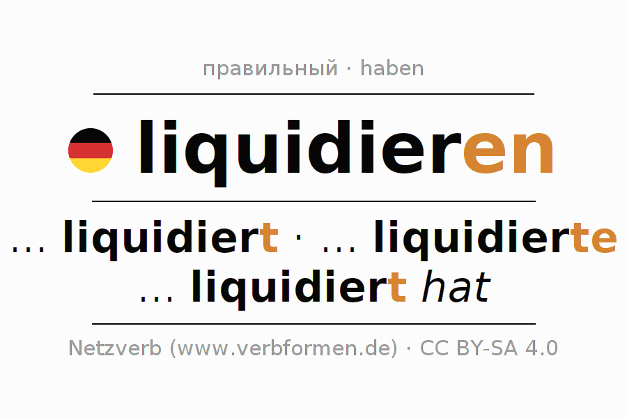 - Презенс: liquidier(e) (du), liquidieren wir, liquidiert (ihr), liquidieren Sie
