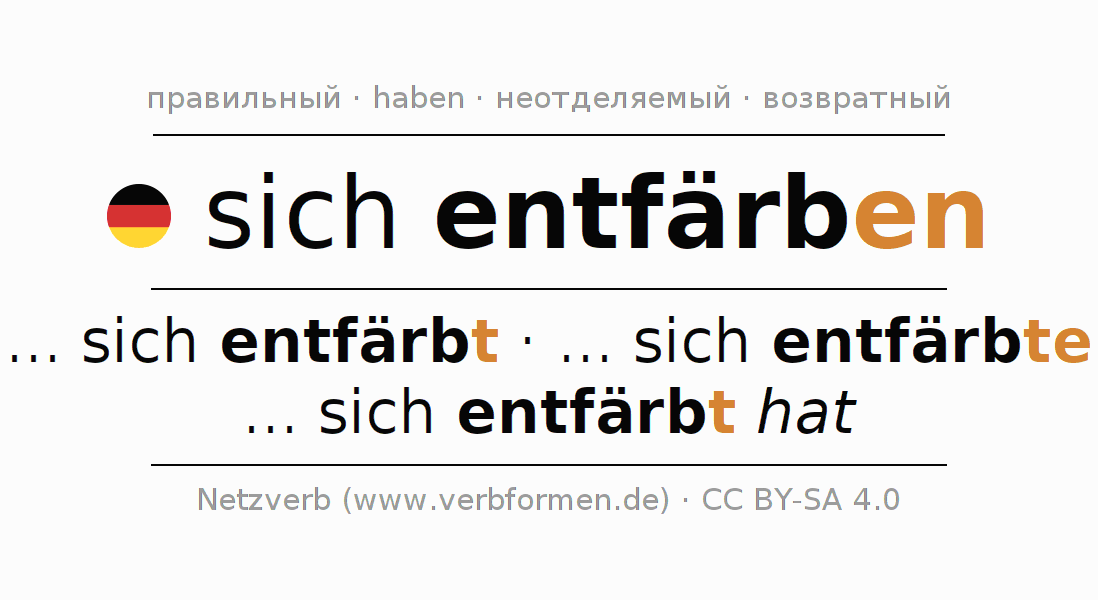 - Инфинитив II: sich entfärbt haben, sich entfärbt zu haben