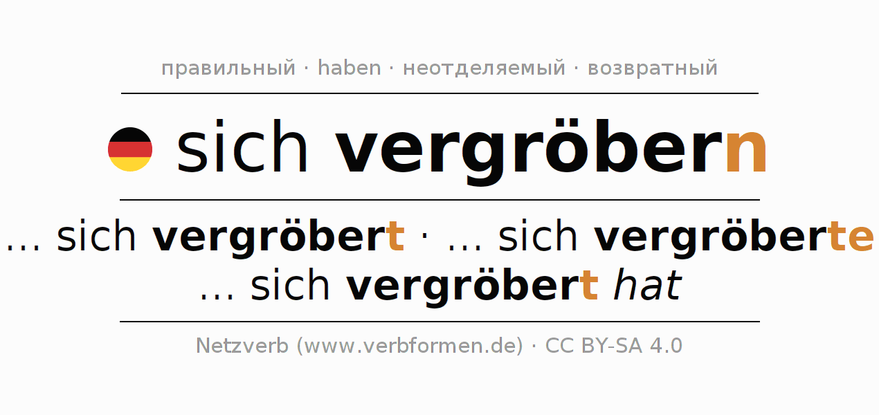 - Инфинитив II: sich vergröbert haben, sich vergröbert zu haben