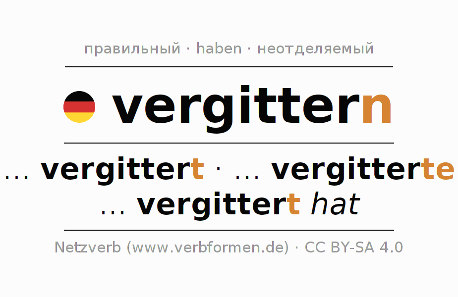 Все временные формы глагола и отглагольных форм vergittern