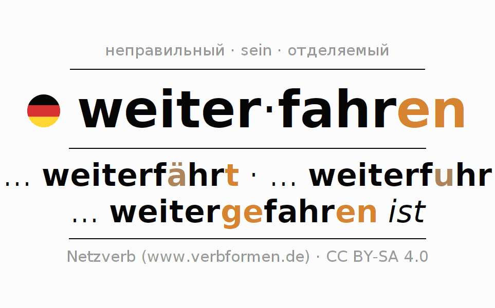Значения и синонимы слова weiterfahren (ist)Правила образования