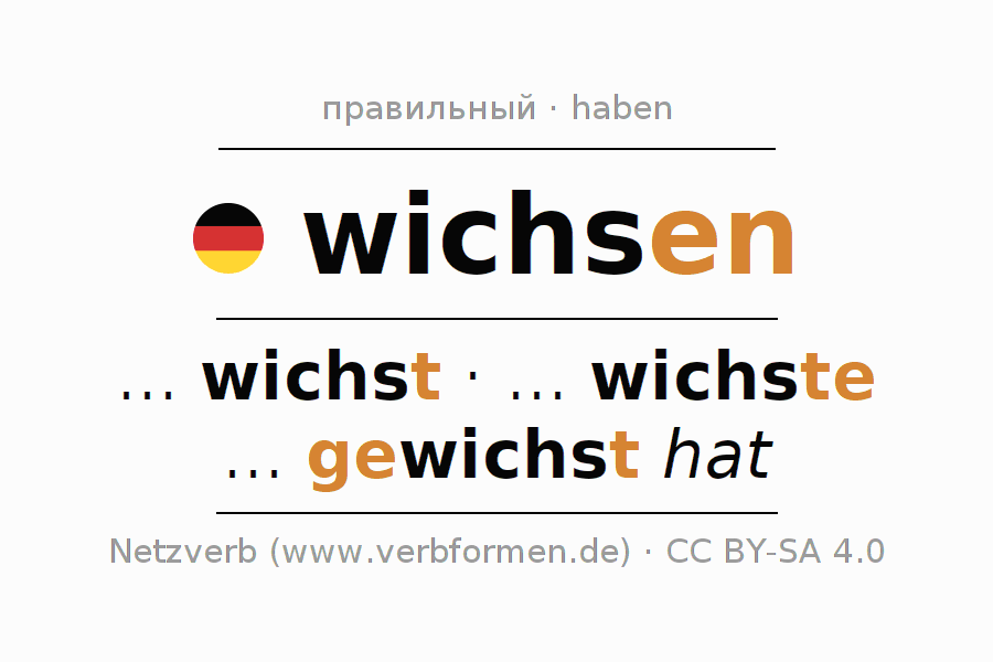 Глагол wichsen спрягается в индикативе Действительный залог (актив) в настоящем, прошедшем и будущем времени