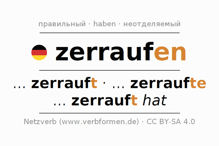 - Инфинитив II: zerrauft haben, zerrauft zu haben