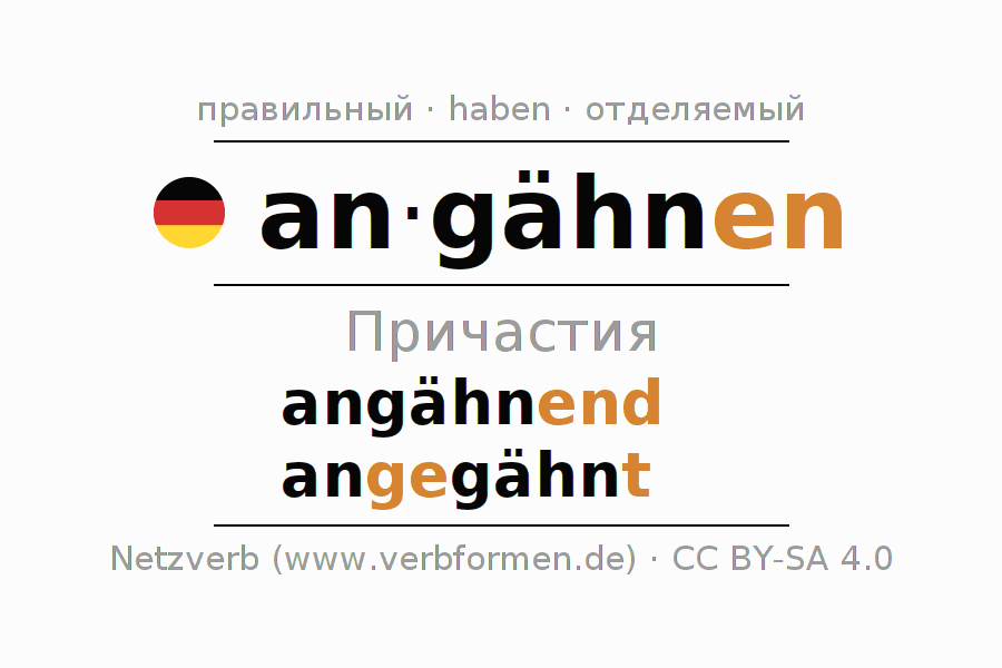 Формами причастия angähnen (зевать в лицо, зевнуть в лицо) являются: {PARTIZIP 1}, {PARTIZIP 2}