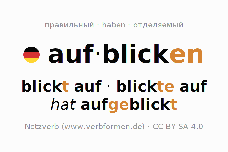 Этот глагол aufblicken полностью спрягается во всех лицах и числах Партицип Презенс Перфект.
