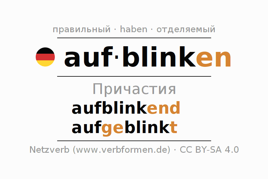 Формами причастия aufblinken (мигать, блеснуть) являются: {PARTIZIP 1}, {PARTIZIP 2}