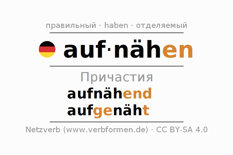 - Как спрягается aufnähen в Партицип?