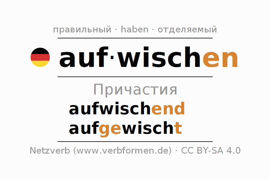 Примеры Действительный залог (актив) Партицип глагола aufwischen