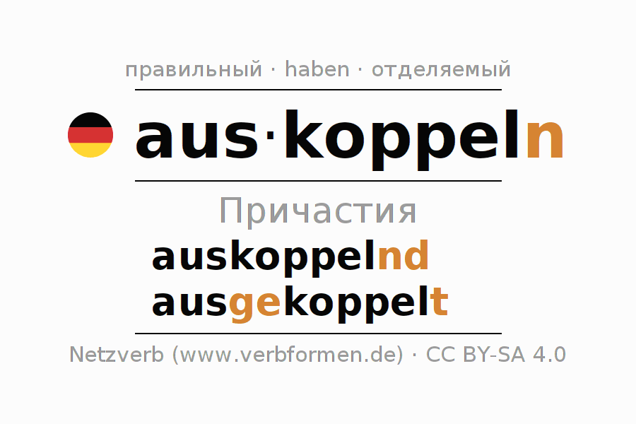 Формами причастия auskoppeln (выделять, отделять) являются: {PARTIZIP 1}, {PARTIZIP 2}