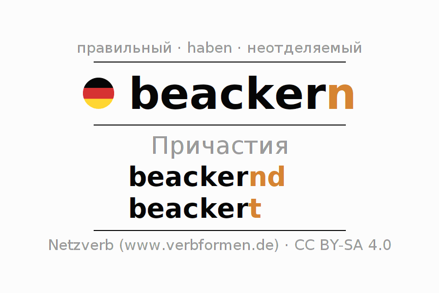 Формами причастия beackern (обрабатывать, влиять) являются: {PARTIZIP 1}, {PARTIZIP 2}