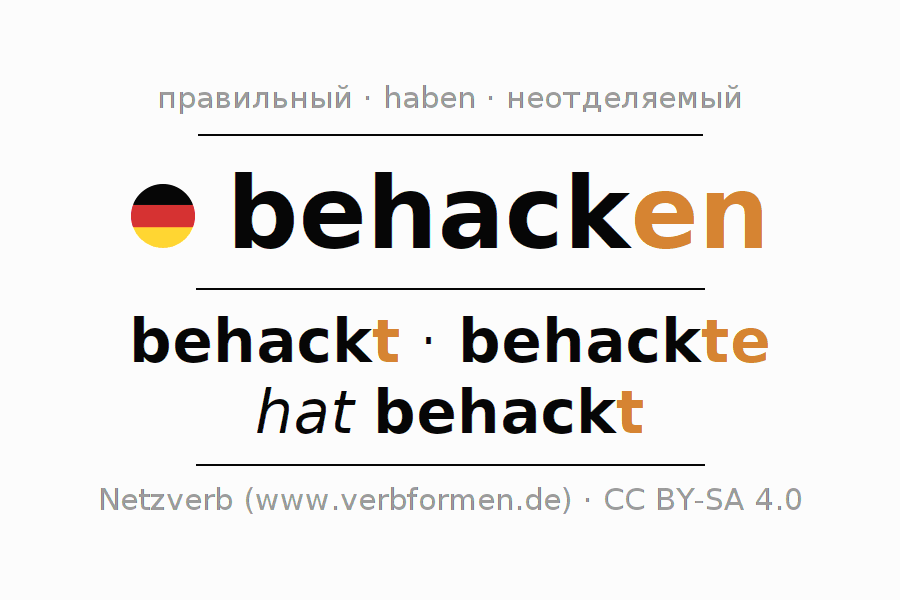 Формами причастия behacken (вскопать, вспахать) являются: {PARTIZIP 1}, {PARTIZIP 2}