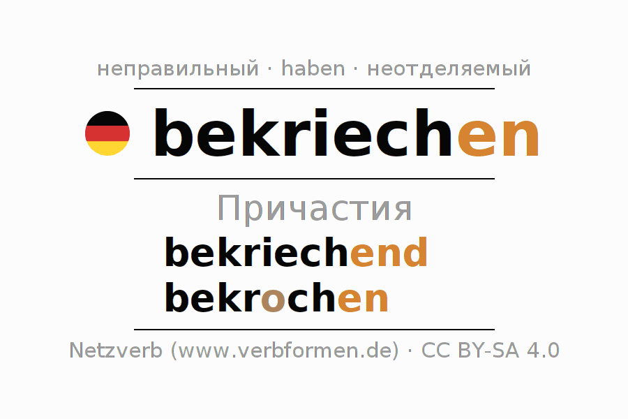 Формами причастия bekriechen (подползать, подкрадываться) являются: {PARTIZIP 1}, {PARTIZIP 2}