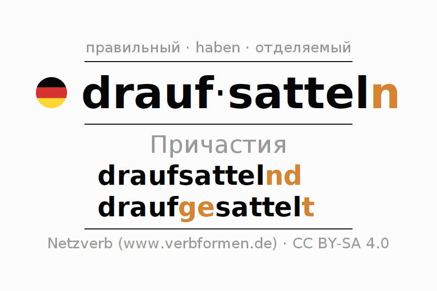 Формами причастия draufsatteln (добавить, дополнить) являются: {PARTIZIP 1}, {PARTIZIP 2}