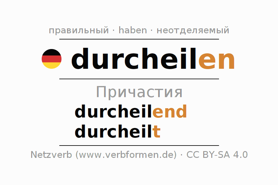 Формами причастия durcheilen (промчаться, провести быстро) являются: {PARTIZIP 1}, {PARTIZIP 2}