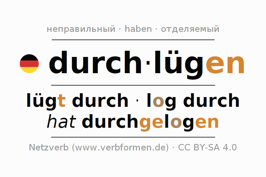 Формами причастия durchlügen (обмануть) являются: {PARTIZIP 1}, {PARTIZIP 2}