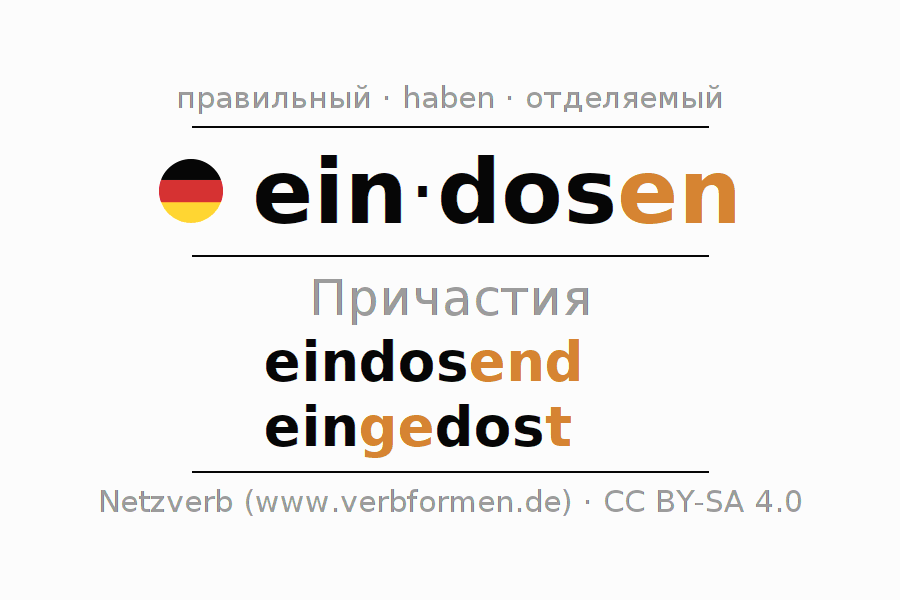 Формами причастия eindosen (консервировать) являются: {PARTIZIP 1}, {PARTIZIP 2}